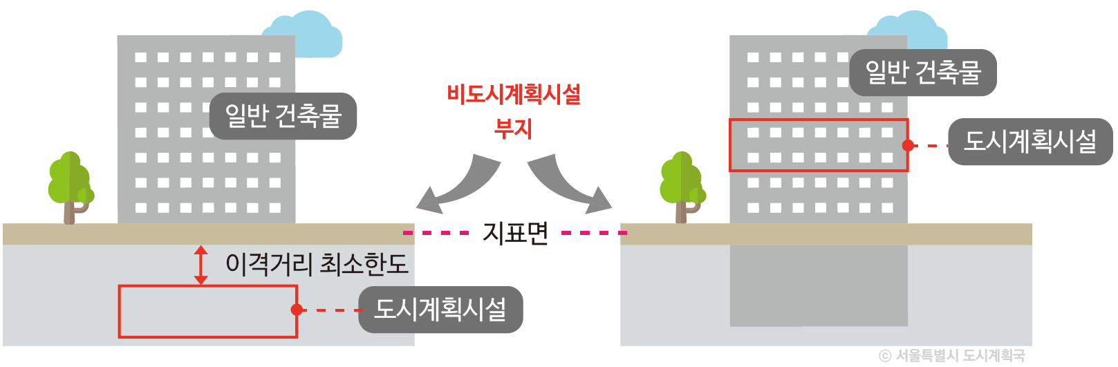 비도시계획시설부지 + 도시계획시설(ex. 일반건축물의 지하철 연결부, 일반건축물 + 공공청사 등)