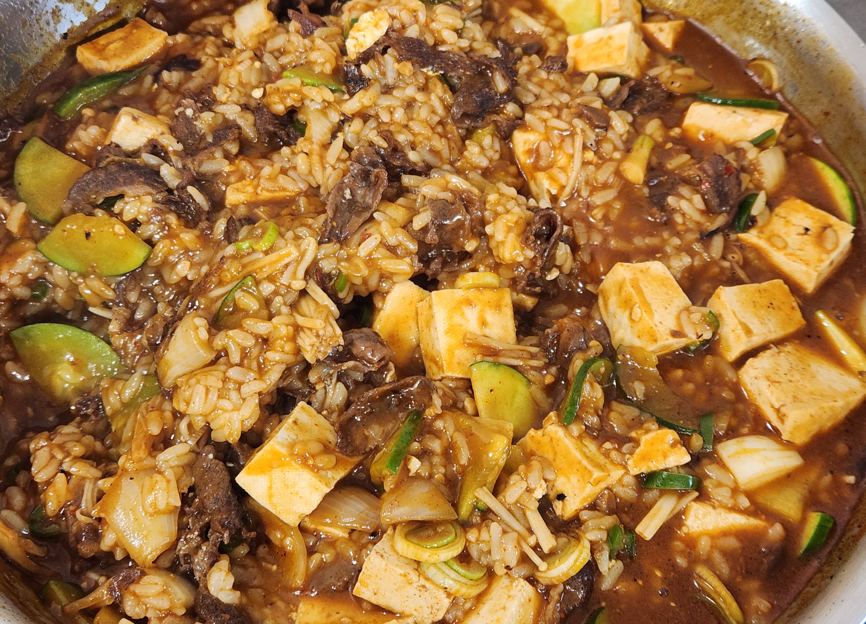 찌개와 볶음밥의 중간쯤 되는 음식이었다.