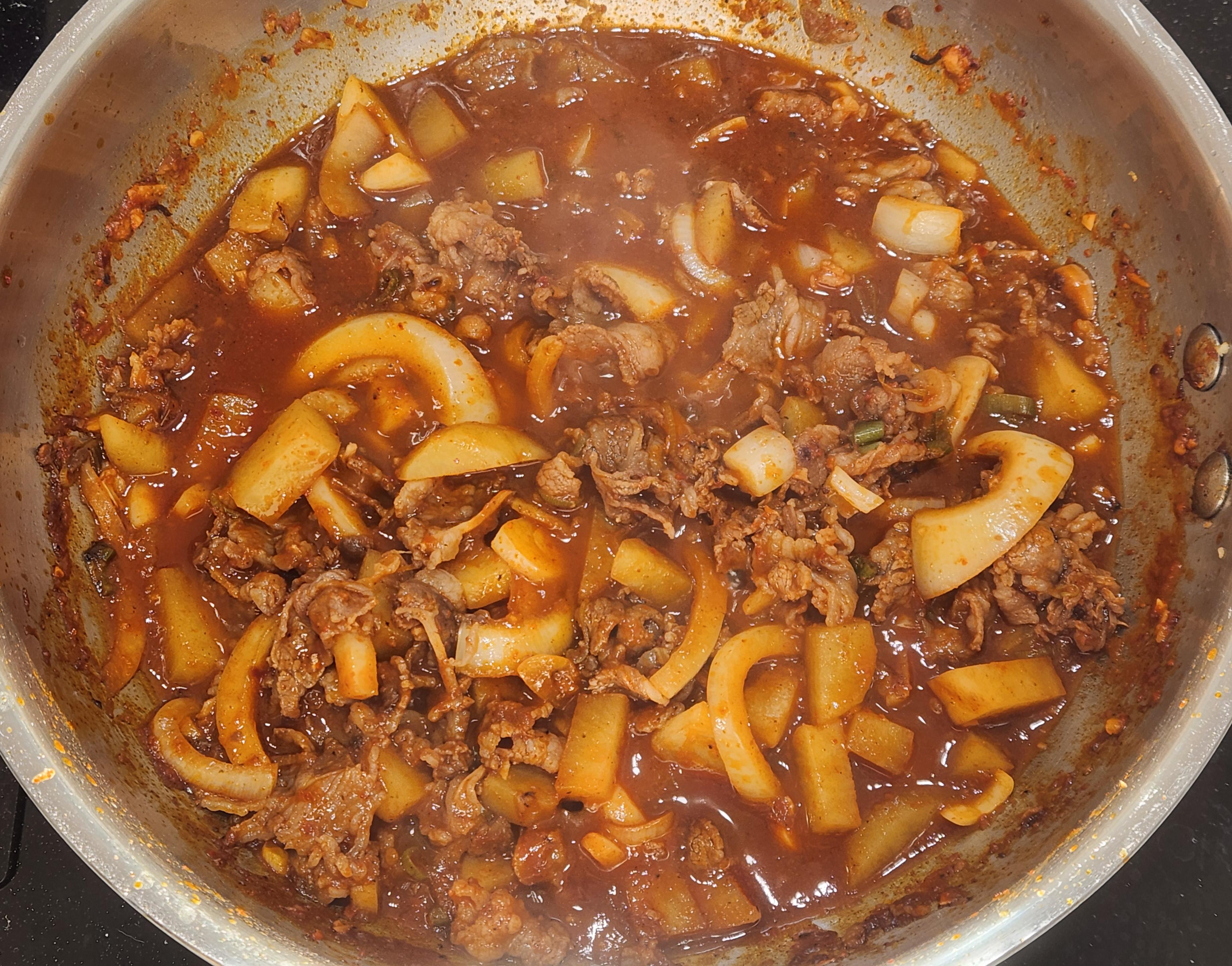 포슬포슬 감자와 양파: 큼직하게 썬 감자와 양파가 국물을 머금어 밥에 비벼 먹기 딱 좋은 상태가 됩니다.